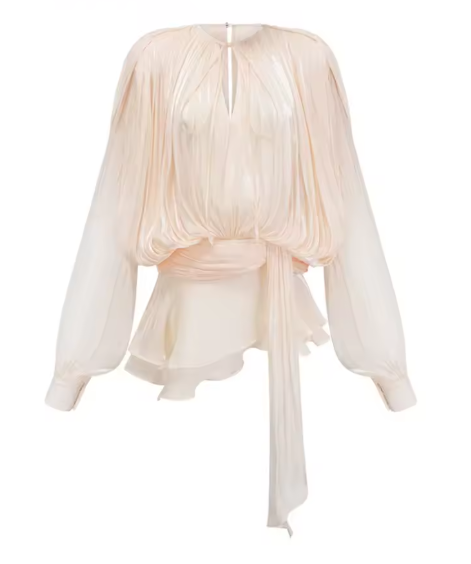 Elegant Ruched Mini Dress – Soft Sheer Long Sleeve Design