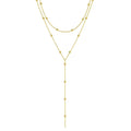 This chic gold-tone necklace features two layered chains with a sleek tassel pendant, creating a sophisticated look perfect for both casual and evening wear.