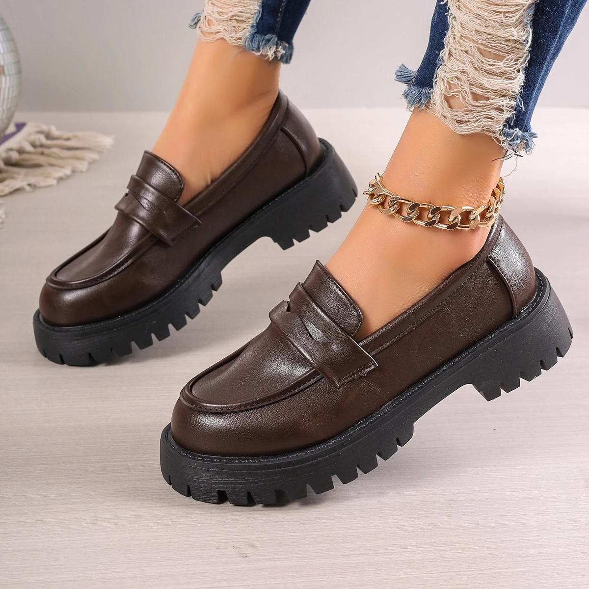 Step into timeless elegance with the Rimocy™ Women’s Chunky Platform Loafers — where classic British fashion meets modern comfort.